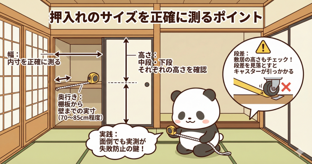 - 必ず押入れのサイズを測ってから購入する