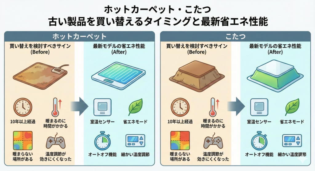 「もったいない」と思って古いホットカーペットを使い続けていると、実は電気代で損をしている可能性があります。