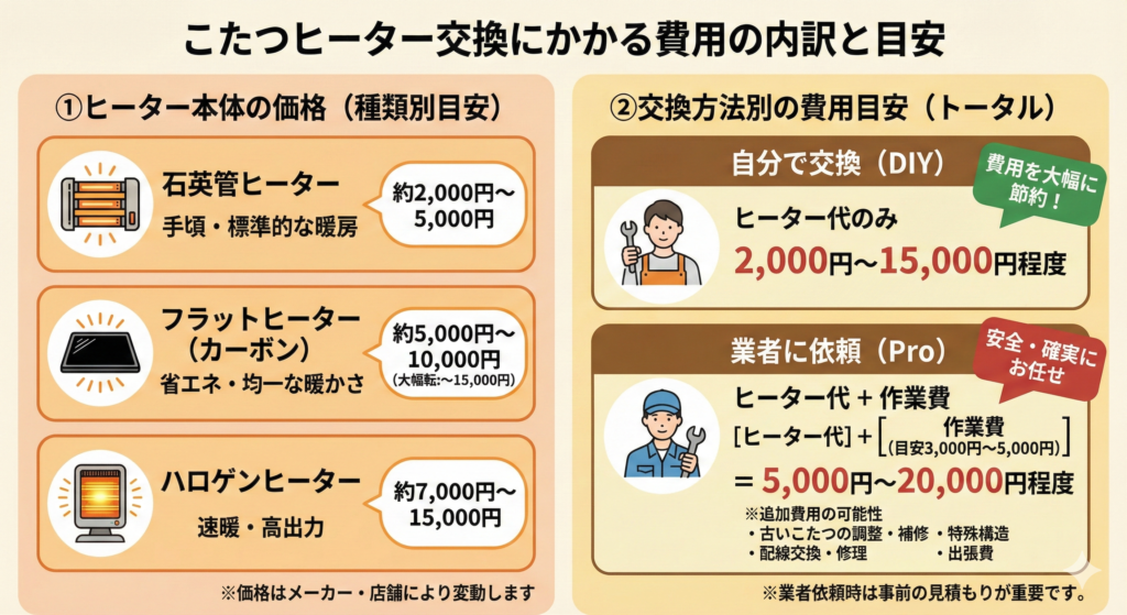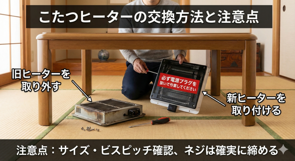 このように、壊れていなくても交換することで得られるメリットは意外と多いんです。特に10年以上使っているこたつの場合は、一度新しいヒーターへの交換を検討してみる価値があるでしょう。