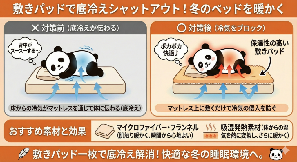敷きパッドで底冷えをシャットアウト